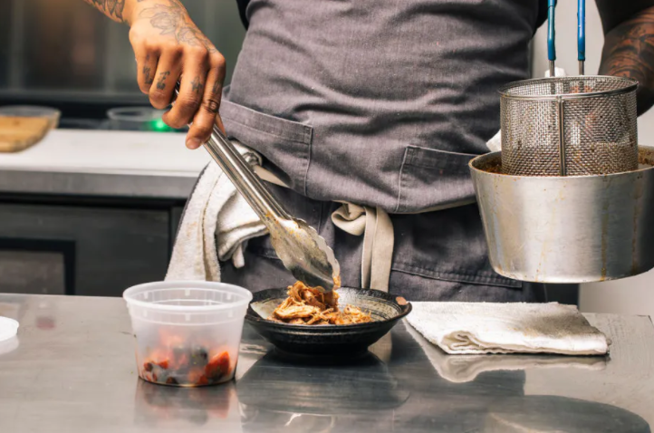 The co-founder of a takeout business called The Bussdown plates a dish at the ghost kitchen he cooks out of in Oakland. Stephen Lam/The San Francisco Chronicle via Getty Images