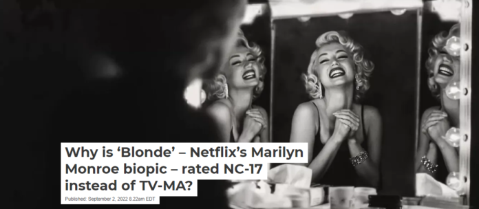Yet Netflix’s Marilyn Monroe biopic, “Blonde,” will carry the rating – a first for the company. On Sept. 28, 2022, it will debut on its streaming platform, following a Venice Film Festival premiere.