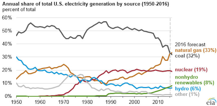 The nonpartisan National Academies of Sciences estimate the health and environmental damages per million Btu, or British thermal units, of coal at US$6.60. (British thermal units are a measure of the energy content of fuels.) For perspective, the delivered coal price in 2016 averaged $2.15 per MMBtu. Coal looks cheap, but we’re paying a hefty hidden cost.