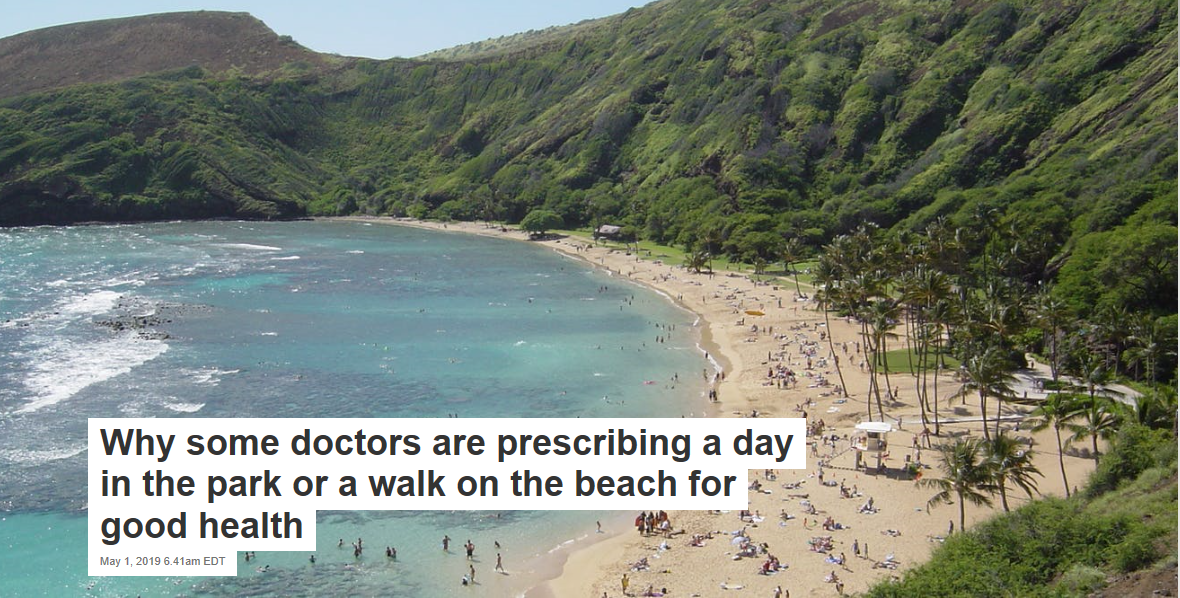 Doctors in Scotland are now able give Nature Prescriptions to their patients. The educational leaflet they provide describes numerous monthly activities including touching the ocean, taking a dog for a walk and following a bumblebee. In the U.S., the Park Rx America program has been working to connect publicly available outdoor space to physicians to have them prescribe nature.