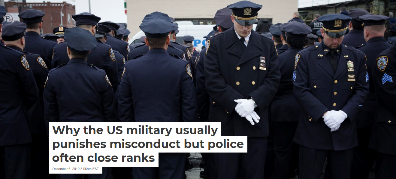 This insistence on holding fellow service members accountable for bad behavior sharply differentiates the military from the police.
