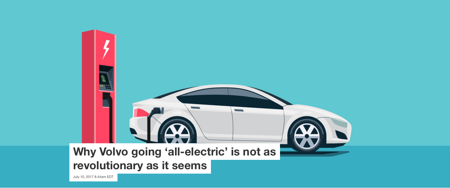 The announcement from Volvo that all of its new models from 2019 will include an element of electric vehicle technology was a PR coup for the Swedish car maker. It received a disproportionate amount of attention as the “first major car company” to switch to all-electric. But the statement by their CEO Hakan Samuelson that this “marks the end of the solely combustion engine powered car”, is more a reflection of Volvo’s position in the market than any justification of a global change.