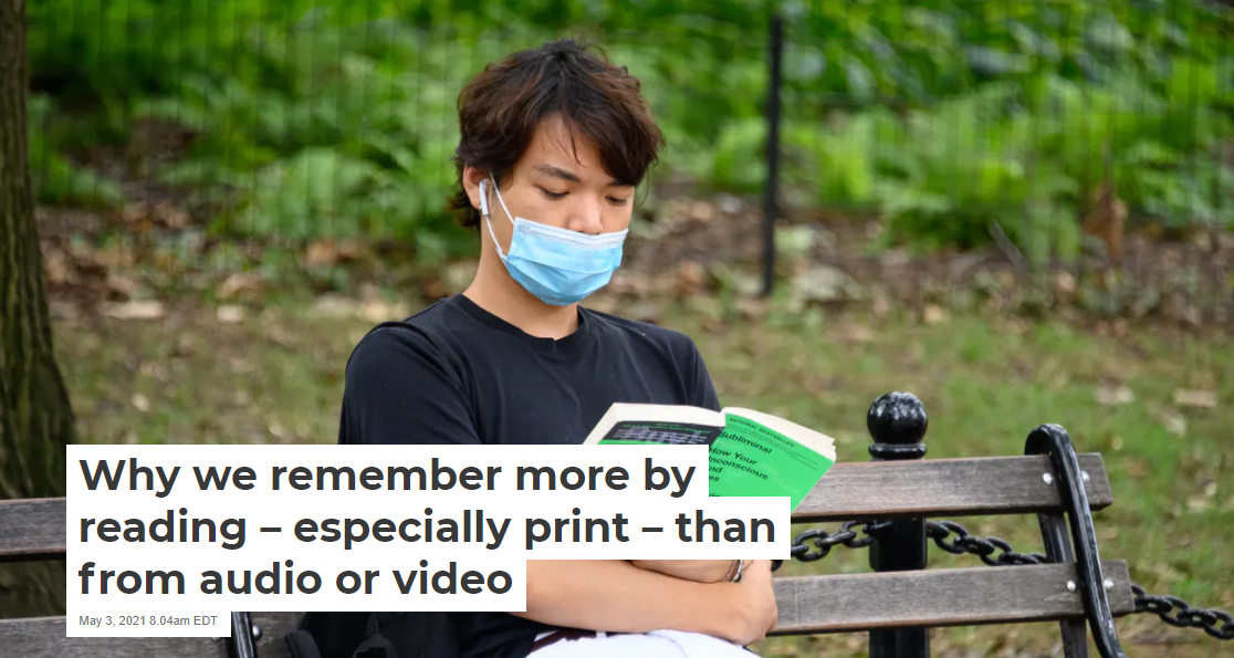 Psychologists have demonstrated that when adults read news stories or transcripts of fiction, they remember more of the content than if they listen to identical pieces.