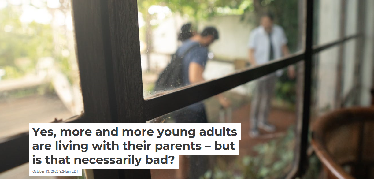 When the Pew Research Center recently reported that the proportion of 18-to-29-year-old Americans who live with their parents has increased during the COVID-19 pandemic, perhaps you saw some of the breathless headlines hyping how it’s higher than at any time since the Great Depression.